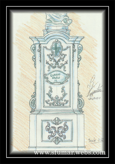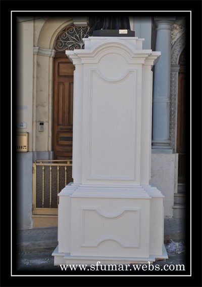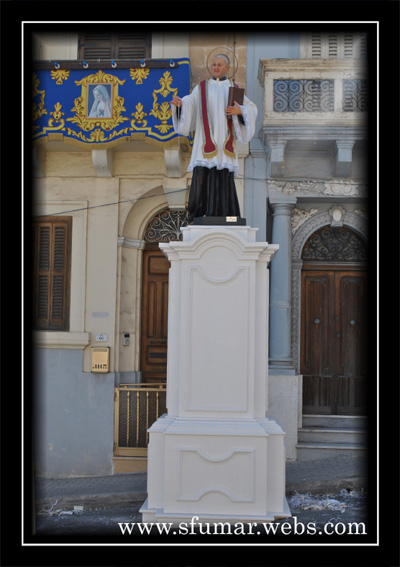 Pieta' - Disinn ta' pedestall ta' sett statwi, Triq Santa Monika, Festa Madonna ta' Fatima