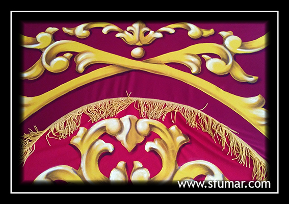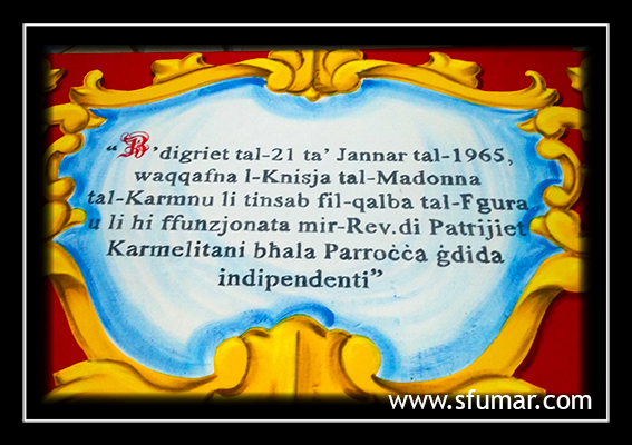 Sfumar ta' pavaljun li jfakkar it-twaqqif tal-Parrocca, Triq il-Kampanella, Festa Madonna tal-Karmnu - Disinn Albert Borda