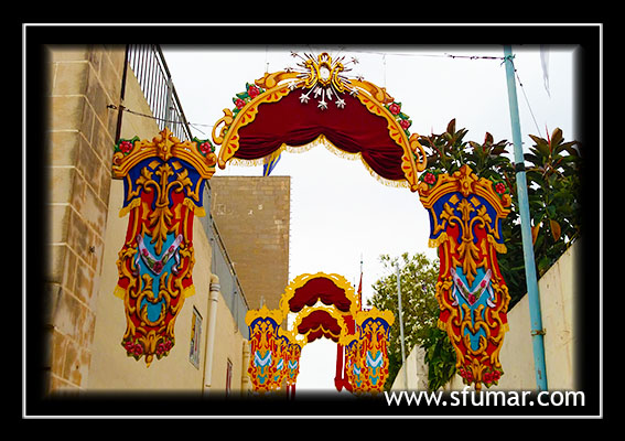 Disinn u sfumar ta' sett arkuni, zuntier, Festa Madonna ta' Fatima